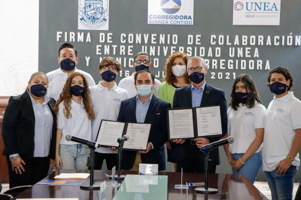 El Municipio de Corregidora, encabezado por el presidente municipal Rafael Montoya Bolaños; y la Universidad de Estudios Avanzados (UNEA) Campus Querétaro, representada por su rector, Mauricio Ruschke Pedro, firmaron un convenio de colaboración en materia educativa y de desarrollo profesional, con el cual, los servidores públicos tendrán la oportunidad de continuar con su preparación académica, y los alumnos de dicha institución universitaria podrán llevar a cabo su servicio social en la administración municipal.