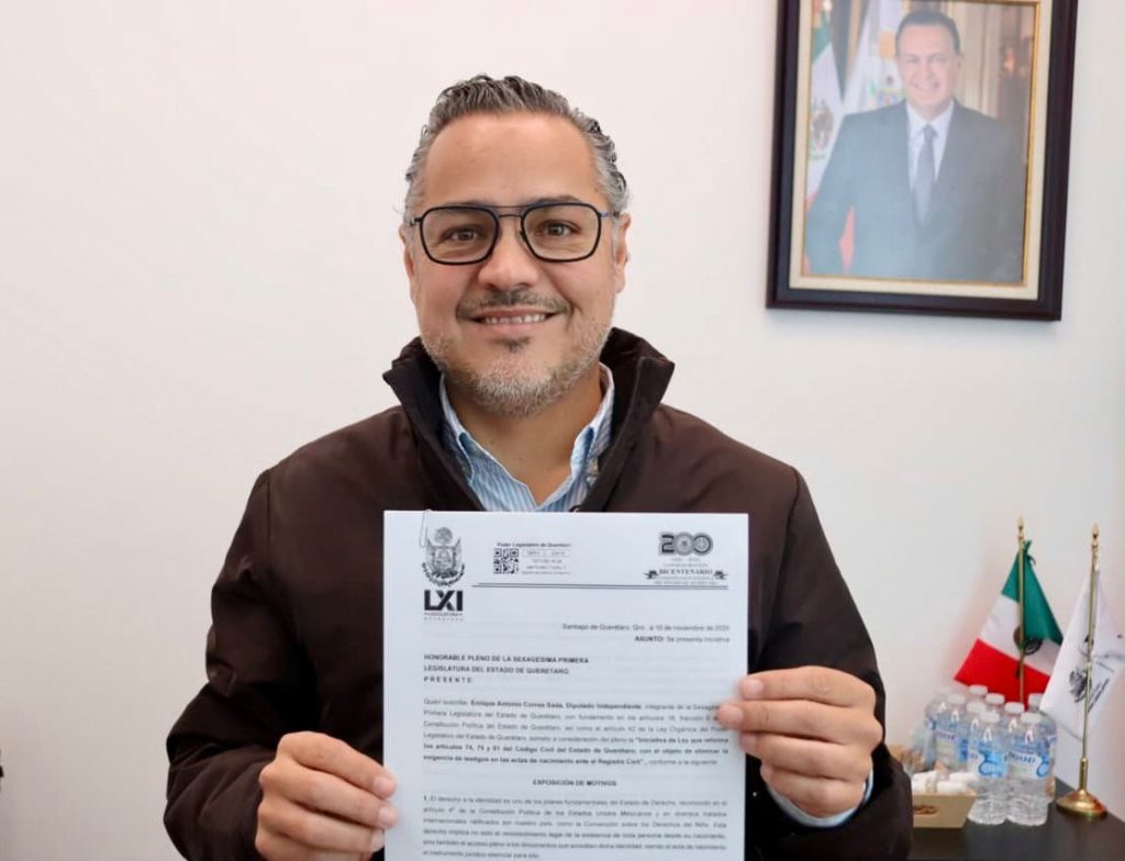 El diputado Enrique Correa Sada presentó una iniciativa para eliminar el requisito de testigos en las actas de nacimiento, con el fin de simplificar trámites y garantizar el derecho a la identidad de niñas, niños y personas adultas en Querétaro.