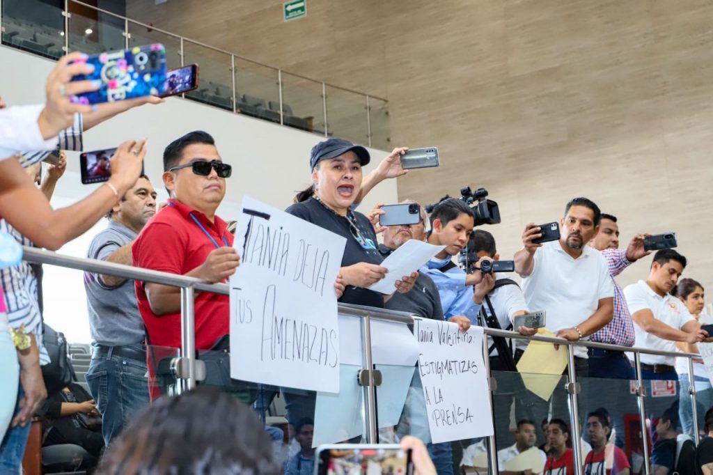Ante la amenaza, periodistas manifestaron su respaldo a la reportera Leticia Villaseñor y exigieron una disculpa pública a la diputada.