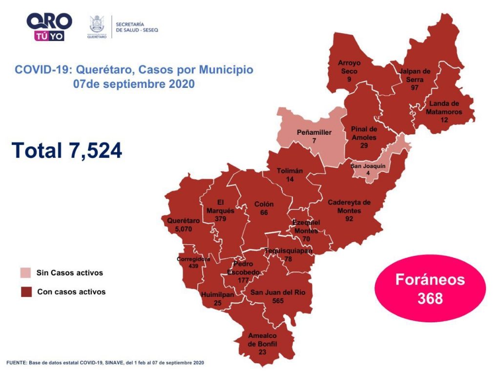 Querétaro 7,524 casos de COVID-19