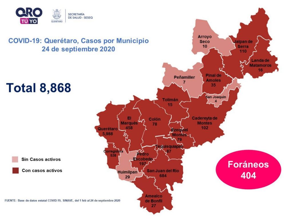 Querétaro a la baja, se reportan 42 casos nuevos de Covid-19