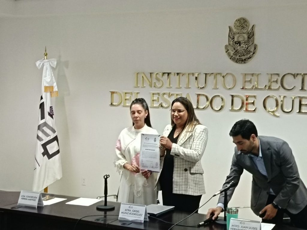 En sesión extraordinaria, la presidenta del partido, Connie Herrera, recibió de manos de la consejera presidenta del IEEQ, Grisel Muñiz, el documento que establece los efectos constitutivos del partido a partir del 1 de julio.