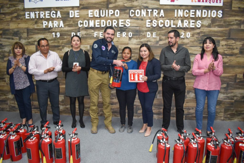 Con el objetivo de fomentar una cultura de prevención en los comedores escolares del municipio, regidores del H. Ayuntamiento del municipio de El Marqués, realizaron un donativo de 50 extintores que se entregaron en las aulas cocina del municipio.