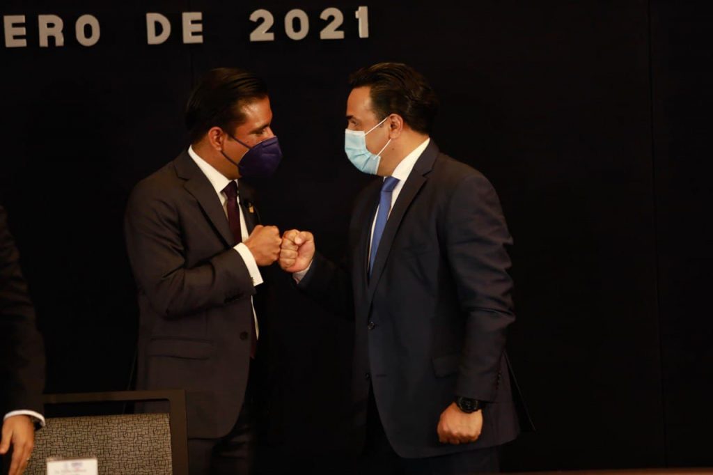 “Al licenciado Fabián Camacho y a los miembros de la nueva mesa directiva les reitero aquí nuestro compromiso de seguir trabajando juntos durante esta pandemia y también trabajando muy fuertemente para poderla superar los invito además a que reconozcamos las fortalezas y las oportunidades de colaboración y coordinación que hemos descubierto en esta contingencia para que podamos con ellas un Querétaro todavía mejor”, expresó.