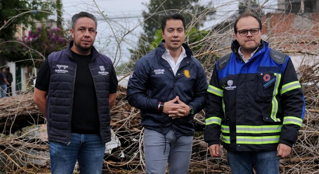 De acuerdo con el presidente municipal, se registraron ráfagas de viento de hasta 30 kilómetros por hora, lo que ocasionó la caída de algunos árboles, entre ellos en la colonia Lomas de Casablanca.