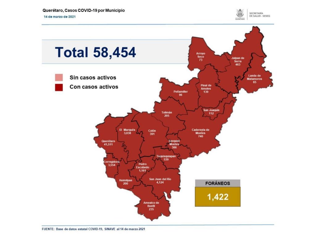 En Querétaro, dos mujeres -de 37 y 63 años- y tres hombres -de 44, 48 y 69-, sin comorbilidad, así como cinco hombres -de 29, 46, 57, 74 y 78-, y diez mujeres -de 43, 49, 51, 54, dos de 58, 72, 75, 78 y 80 años-, con diversas comorbilidades, que se encontraban hospitalizados, fallecieron a causa de COVID-19.