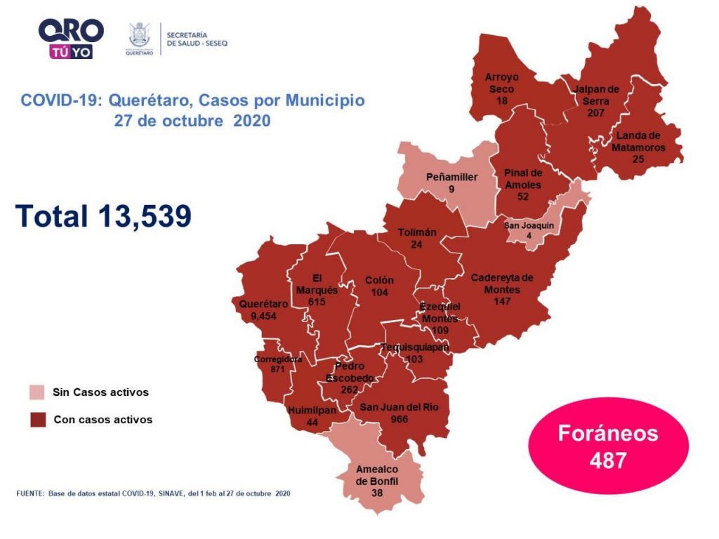 Se suman 289 casos de Covid-19 en Querétaro
