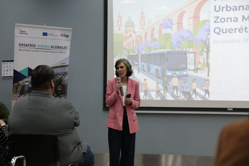 El director de la Agencia de Movilidad del Estado de Querétaro (AMEQ), Gerardo Cuanalo Santos, participó en la presentación del Plan Integral de Movilidad Urbana Sostenible de la Zona Metropolitana de Querétaro (PIMUS-ZMQ), un proyecto respaldado por la Unión Europea con una inversión de 300 mil euros, como parte del programa Desafíos Verdes Globales en México.