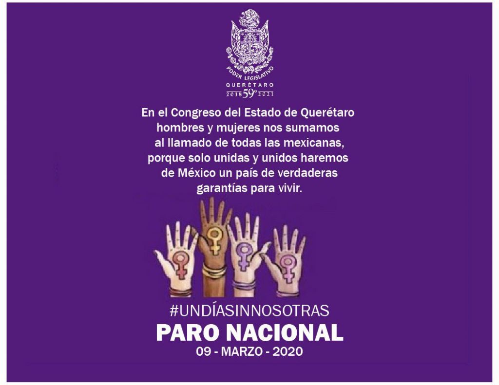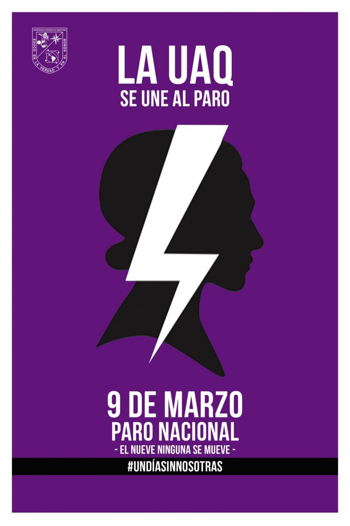 La víspera, la rectora de la Universidad Autónoma de Querétaro, Teresa García Gasta anunció que dicha institución se sumará este 9 de marzo al Paro Nacional #UnDiaSinNosotras -convocado por colectivas y organizaciones feministas- como repudio a los feminicidios recientes.