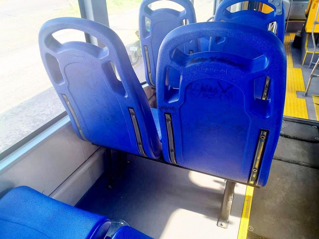 Mediante grupos de Facebook, usuarios del transporte público compartieron imágenes en las que se observan pintas con marcador negro en la parte trasera de algunos asientos de las nuevas unidades Mercedes-Benz, las cuales operan desde el 26 de septiembre pasado.