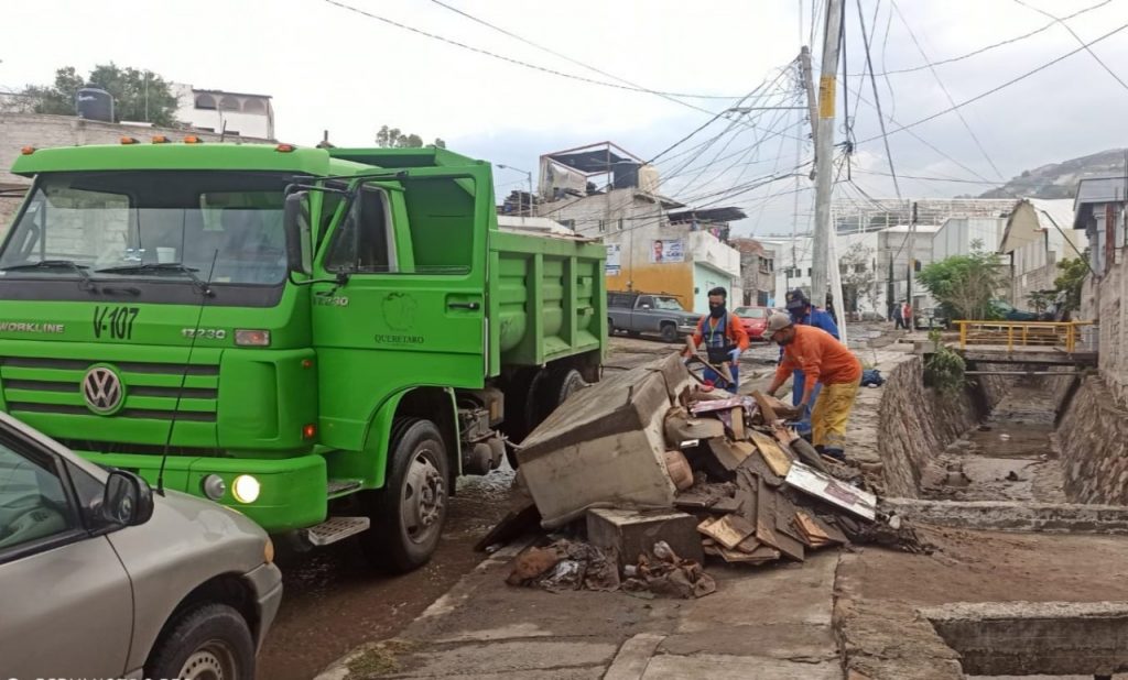 En el municipio de Querétaro, apuntó, se han atendido reportes en Bernardo Quintana a la altura del puente de las vías del tren; precisó que en esa zonas se tuvo que hacer limpieza de torrenteras.