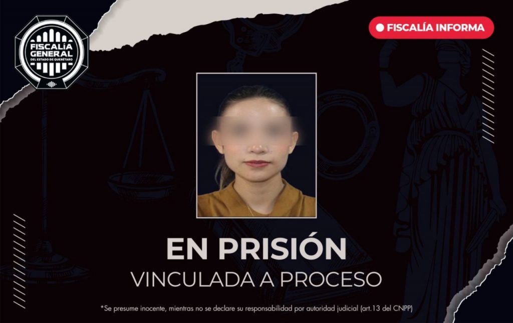 La Fiscalía General del Estado de Querétaro reportó la vinculación a proceso de una mujer por el delito de robo específico a casa habitación, tras hechos ocurridos en la colonia Jurica Campestre, en el municipio de Querétaro.