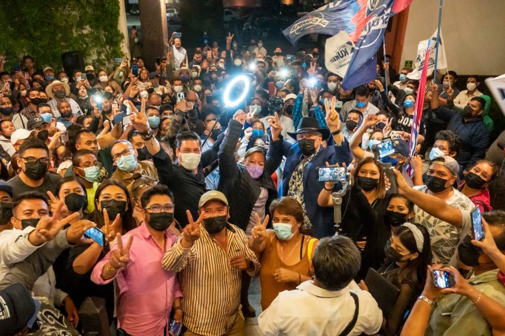 Lo anterior se dio a su llegada a la casa de campaña donde lo esperaba un centenar de simpatizantes, que lo recibieron con porras y a quienes agradeció su apoyo y confianza para alcanzar el virtual triunfo hacia la reelección.