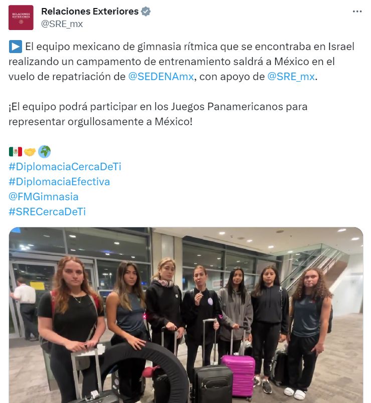 Entre los connacionales que estaban en Israel también se encuentra el equipo mexicano de gimnasia rítmica que estaba realizando un campamento de entrenamiento.