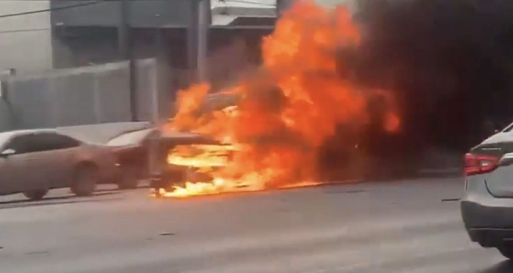 Testigos informaron que escucharon detonaciones de arma de fuego antes de que el vehículo fuera hallado incendiado sobre la avenida.