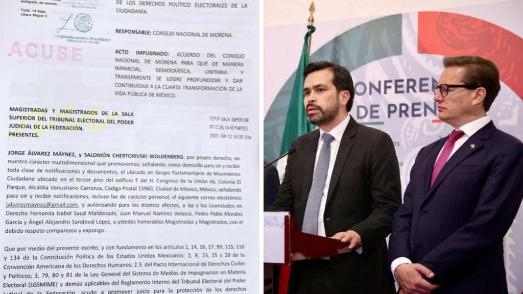 El coordinador de Movimiento Ciudadano en la Cámara de Diputados, Jorge Álvarez Máynez, y el Diputado Salomón Chertorivski presentaron una impugnación ante el Tribunal Electoral del Poder Judicial de la Federación (TEPJF) en contra del acuerdo de Morena para la contienda entre los aspirantes a la candidatura presidencial de 2024, pues aseguraron que éste viola las leyes electorales y la Constitución.