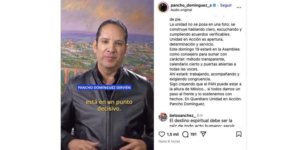 Domínguez aseguró que el PAN vive un “punto decisivo” y pidió construir la unidad “hablando claro, escuchando y cumpliendo acuerdos verificables”. El mensaje fue acompañado por una reflexión sobre su historia en el partido desde 1992, al que describió como su “casa de convicciones claras y palabra cumplida”.