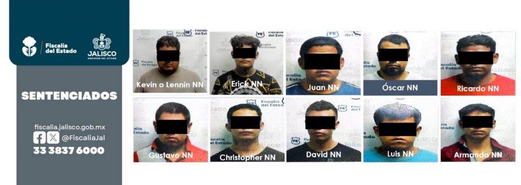 La Fiscalía estatal calificó la condena como una de las más severas impuestas por estos delitos en Jalisco. Los sentenciados son Lennin “N” (también conocido como Kevin “N”), David “N”, Gustavo “N”, Christopher “N”, Juan “N”, Óscar “N”, Erick “N”, Luis “N”, Ricardo “N” y Armando “N”.