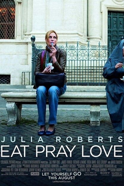 Un filme que tiene mucha resonancia en este sentido, es Eat Pray Love, cuyo estreno fue el 13 de agosto de 2010, y que está basado en el libro de mismo nombre, escrito por Elizabeth Gilbert. Su publicación fue el 16 de febrero de 2006.