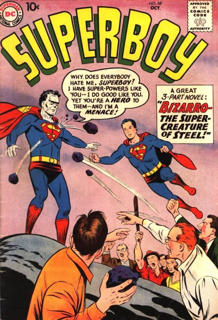 El 21 de agosto de 1958, se publicó el comic, Superboy #68, donde vemos la primera aparición de Bizarro, creado por el escritor, Otto Binder, y el artista, George Papp. Bizarro tiene muchas similitudes con el monstruo de Frankenstein.