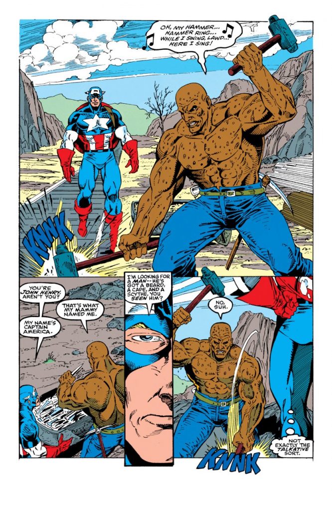El relato principal es escrito por Mark Gruenwald, dibujado por Ron Lim y con tintas de Danny Bulanadi. En este, Steve persigue a un extraño villano quien presume tener control del tiempo y envía al supersoldado al pasado de su país, de forma que conoce figuras históricas (y algunas de leyenda), como John Henry, Johnny Applesed, Pecos Bill, Paul Bunyan y al mismísimo Tío Sam.