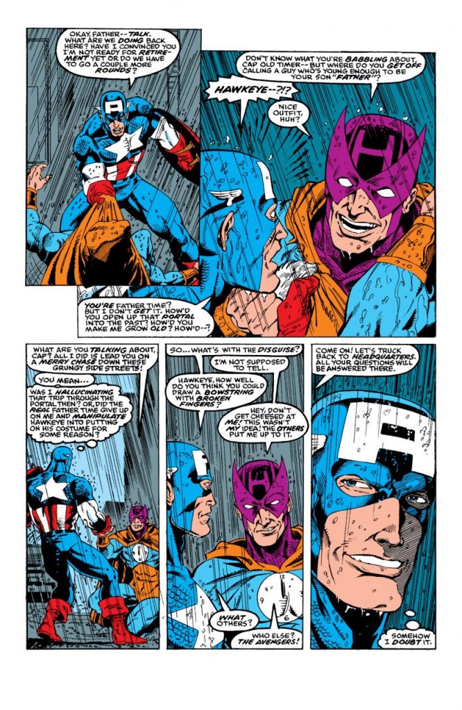 No obstante, cuando regresa Steve al presente, resulta que el villano no tiene poderes y solamente se trata de Hawkeye, quien se ha disfrazado para atraerlo y llevarlo a su fiesta de cumpleaños número 50, junto con el resto de The Avengers.