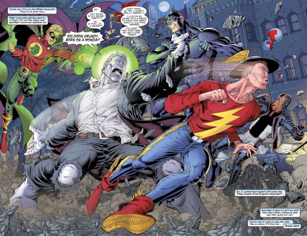 Al inicio de su serie, Kara intenta integrarse al resto de JSA. Afortunadamente, Courtney Whitmore (Stargirl), es prácticamente de su edad. Otros miembros del equipo de héroes, son Mister Terific, el primer Green Lantern (Alan Scott), Wildcat y Power Girl. En esa ocasión el grupo pelea contra Solomon Grundy.