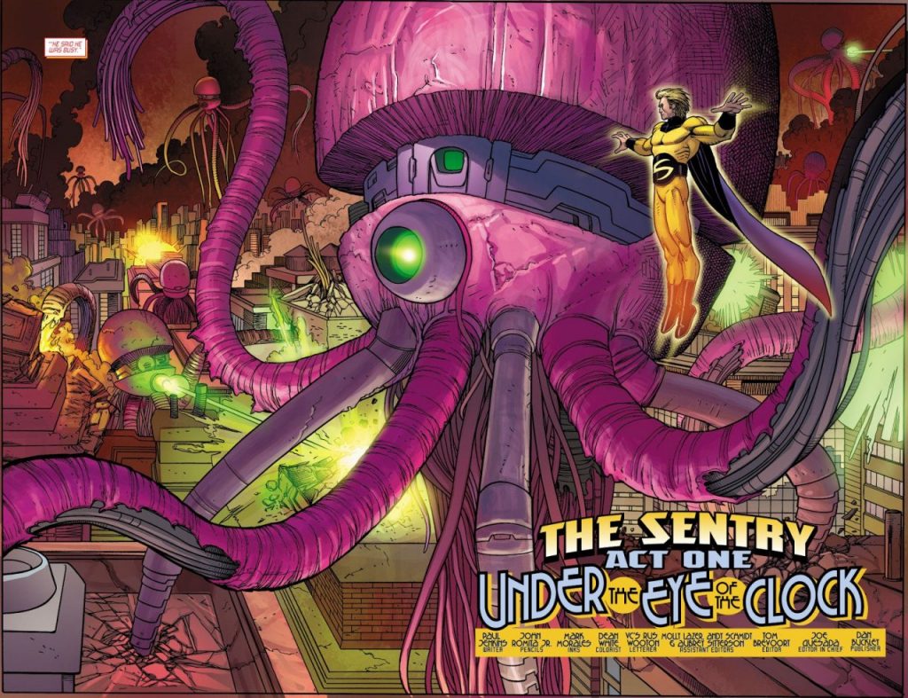 El escritor Paul Jenkins y el artista Jae Lee, se apegaron lo más posible a la fórmula de la editorial con su creación del año 2000, The Sentry, de la cual hablamos en una ocasión anterior.