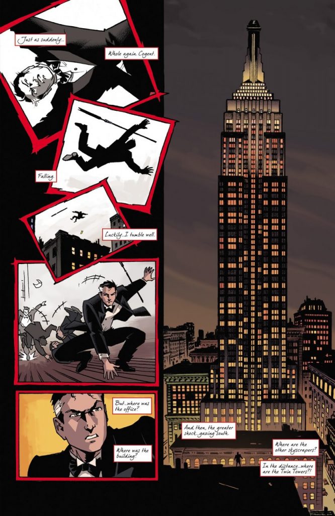 El mafioso viaja a lo que parece otro mundo y deduce que se trata de otra época. Visualmente, el comic pasa de blanco y negro, el tradicional color de los comics de Grendel, al color, formato en el que Dynamite publica The Shadow.