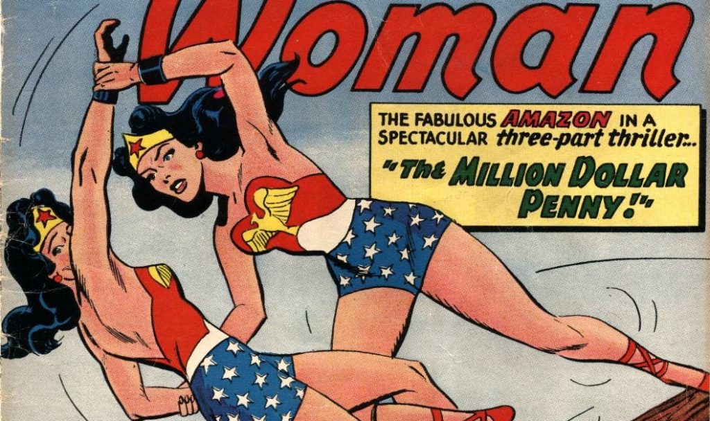 El 20 de marzo de 1958 apareció en los puestos de periódicos, Wonder Woman #98 (y se aproximaba a su número de aniversario número 100). Escrito por Robert Kanigher, con arte a lápiz de Ross Andru y tintas de Mike Esposito. La página principal nos advierte… “¡Hasta ahora, solo han existido ocho maravillas del mundo! ¡Pero una novena ha sido agregada! ¡Wonder Woman…hermosa como Afrodita, sabia como Atenea, más veloz que Mercurio y más fuerte que Hércules!”.