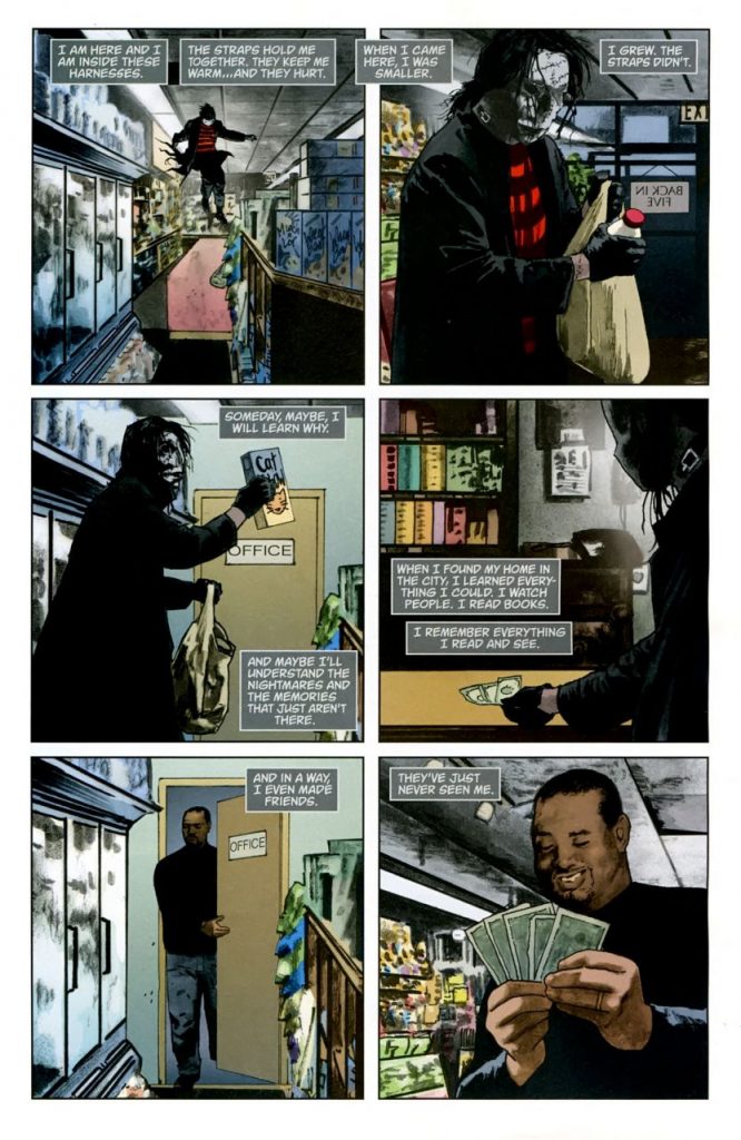 En el primer número, después de que Simon ayuda a un secuestrado, decapitando a uno de sus captores y liberando a su víctima, lo único que pide a cambio es un poco de comida.