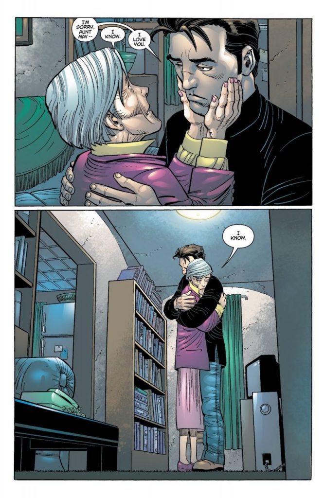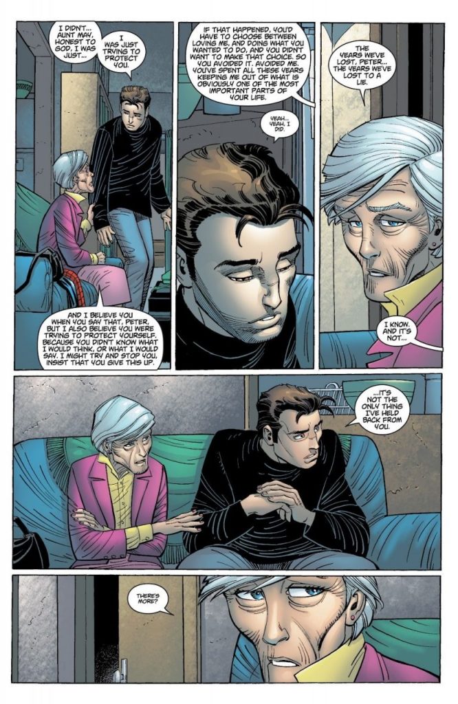 La historia es perfectamente narrada por Straczynski y Romita Jr., con momentos de humor, aunque el entorno es serio. Después de todo, era un momento muy esperado, pero que se había evitado por muchos años. Marvel tenía como política que May no conociera el secreto de su sobrino.
