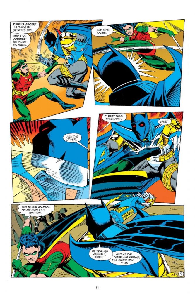 La historia continúa en Robin #1, escrito por Dixon, con arte de Tom Grummet y tintas de Scott Hanna. Su publicación fue el 5 de octubre de 1993.