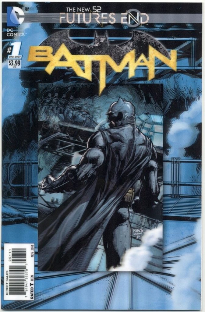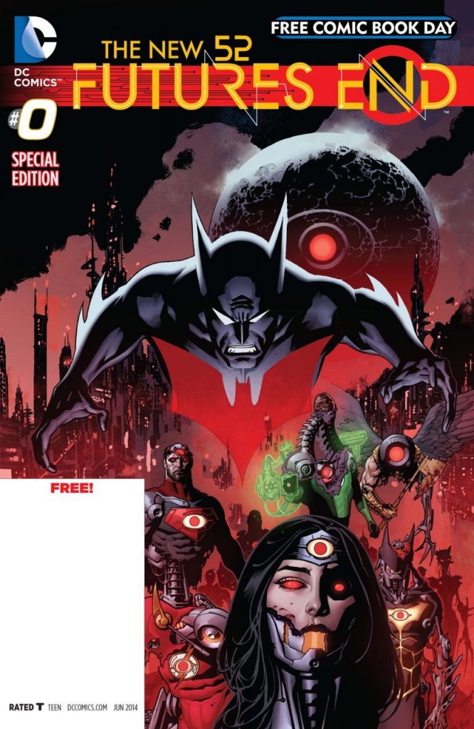 Futures End comenzó el día del comic gratis, en el suplemento regalado por las tiendas de comics, y publicado por DC, The New 52: Futures End FCBD Special Edition #0, del sábado 3 de mayo de 2014.