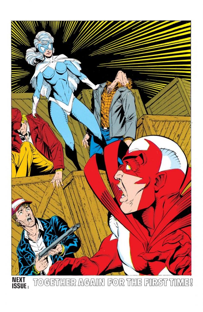 Furioso, Hawk la ataca, más no puede hacerle daño. Dove le cuenta su historia y afirma que no pidió los poderes, le fueron conferidos por una voz desconocida y es su deber utilizarlos para el bien.