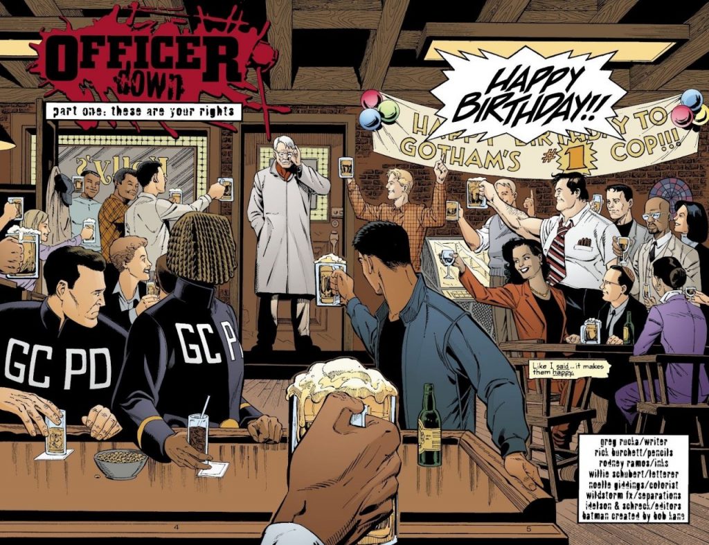 Officer Down es uno de tantos eventos en los comics del detective de Gotham y también uno de los tantos que vale la pena leer. No solo es un relato de superhéroes, es una intriga noir como la que podríamos leer en una novela y que nos invita a ser parte del equipo de investigadores cuyo trabajo es llegar al fondo del misterio.