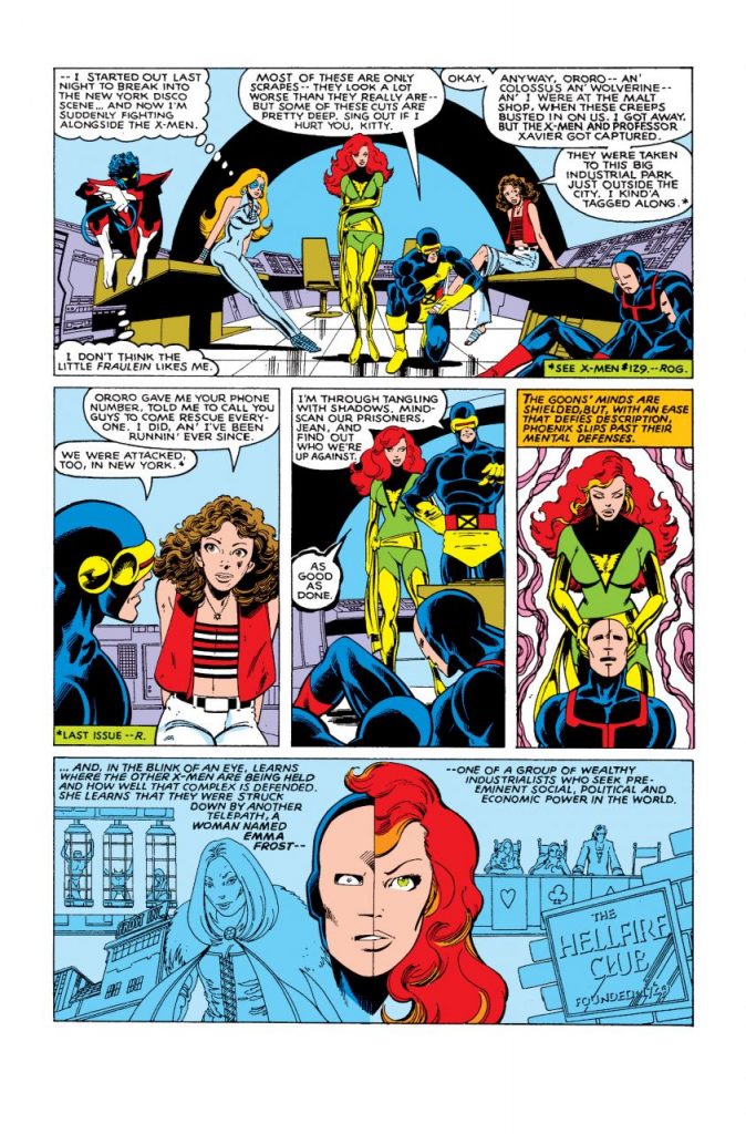 Es de especial atención la primera pelea entre Jean Grey (Phoenix) y Emma Frost (White Queen), pues serían grandes rivales durante muchos años, al igual que ha sucedido con Kitty y Frost.