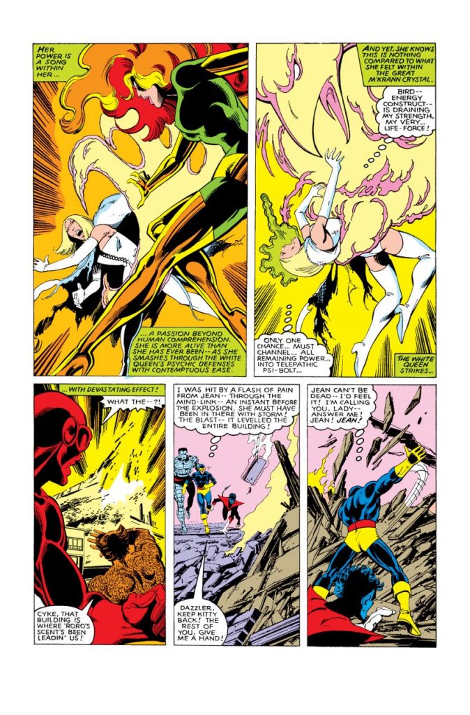 Cyclops, Phoenix, Nightcrawler, Dazzler y Kitty rescatan al resto de los X-Men en una gran batalla producida por el equipo creativo de Chris Claremont, John Byrne, Terry Austin, Glynis Wein y Tom Orzechoswki, bajo la supervisión del editor Roger Stern, en lo que es el tercer episodio de The Dark Phoenix Saga.