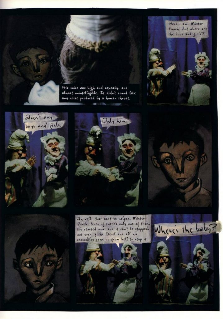 Es por la naturaleza anárquica y maliciosa de Punch, que se puede prestar a lo macabro, como en el relato de Gaiman y McKean, donde la tradición tiene una propuesta más macabra.
