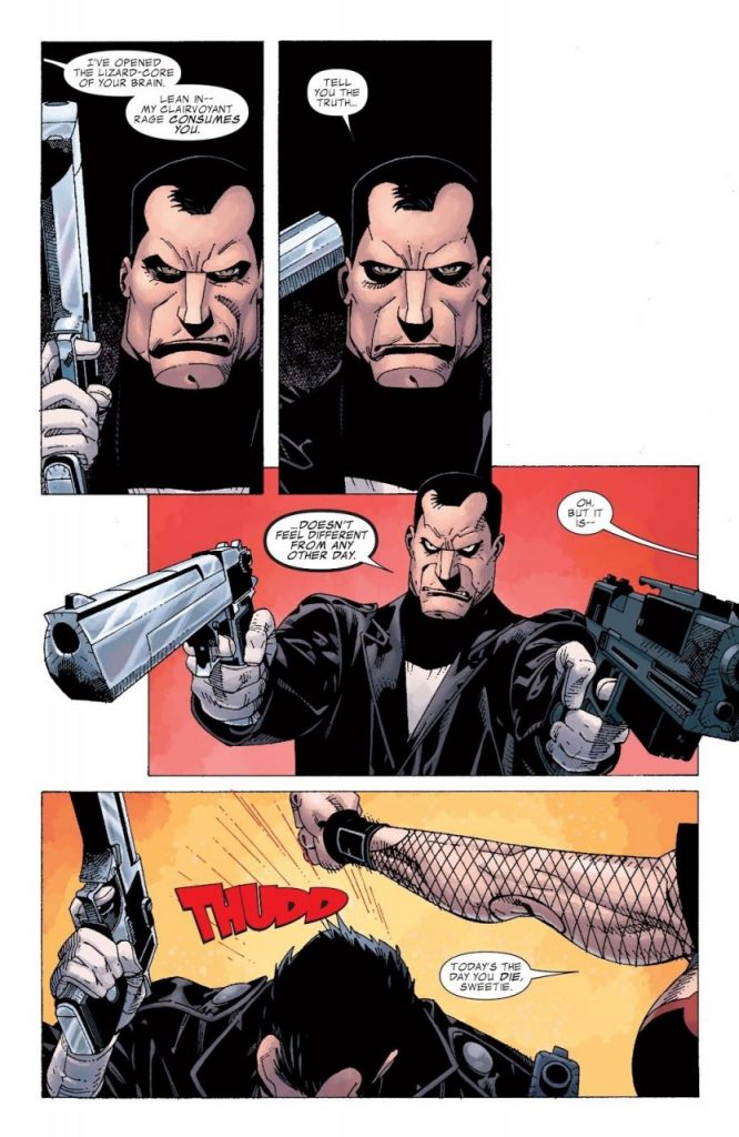 Cuando Punisher llega para detener a las villanas, una de ellas le ordena sacar toda su furia y suicidarse. Sin embargo, la estrategia no funciona, pues Punisher asegura que no se siente más enojado que cualquier otro día.