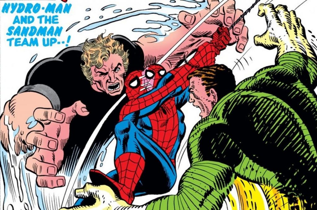 Peter es alertado acerca de la pelea entre Hydroman y Sandman, por lo que acude para intervenir. Sin embargo, ambos se unen contra él.