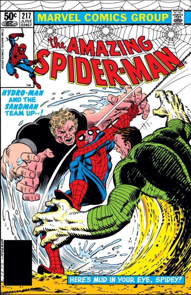 The Amazing Spider-Man #217, publicado el 10 de marzo de 1981, presenta la primera de dos partes en la que vemos a Hyrdroman contra Sandman… contra Spider-Man.