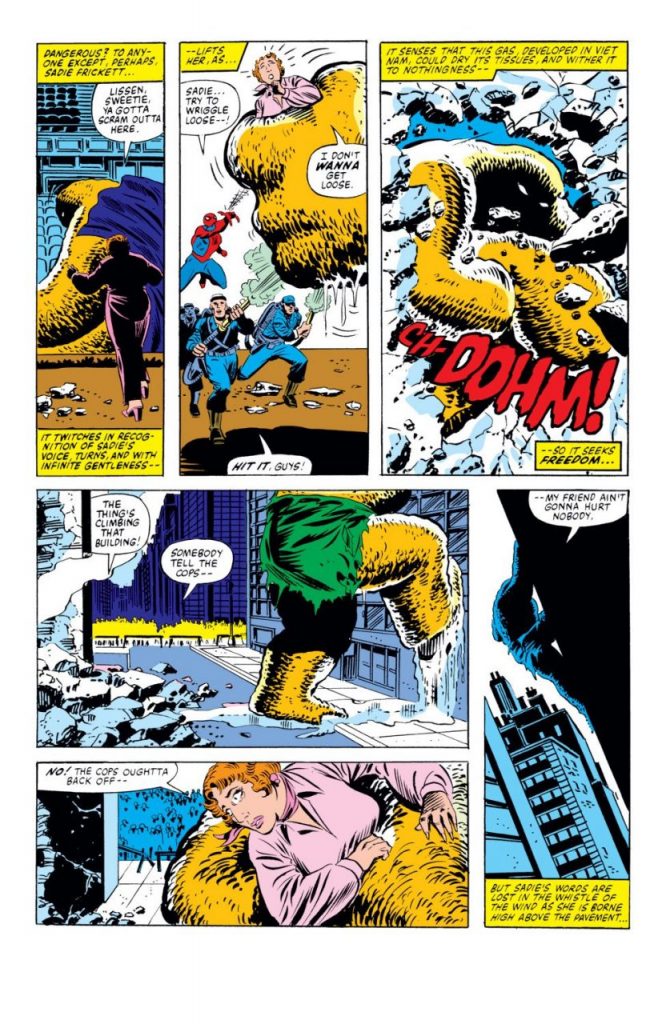Cuando Sadie cae al vacío, es rescatada por Spider-Man, mientras que los restos de la bestia se estrellan en el pavimento en lo que parece ser su destino final.