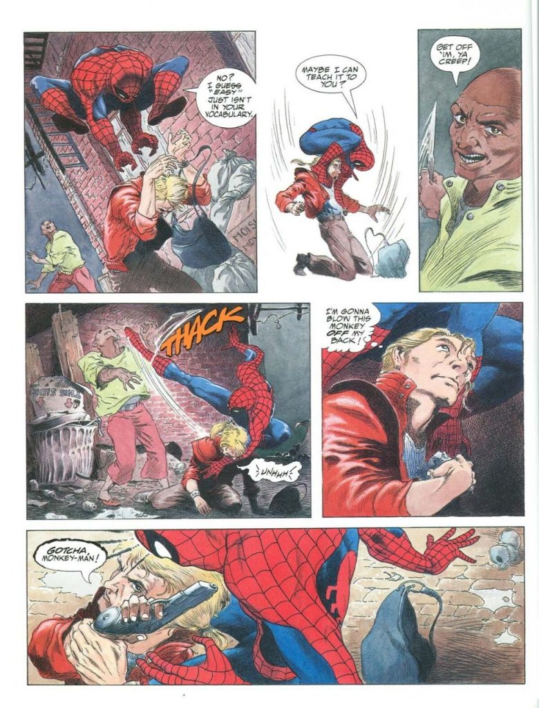 Los diseños de páginas de Vess, su narrativa, técnica y creatividad, nos envuelven prácticamente desde la primera página. Su versión de Spider-Man es muy de él y, al mismo tiempo, respetuosa de la imagen clásica.