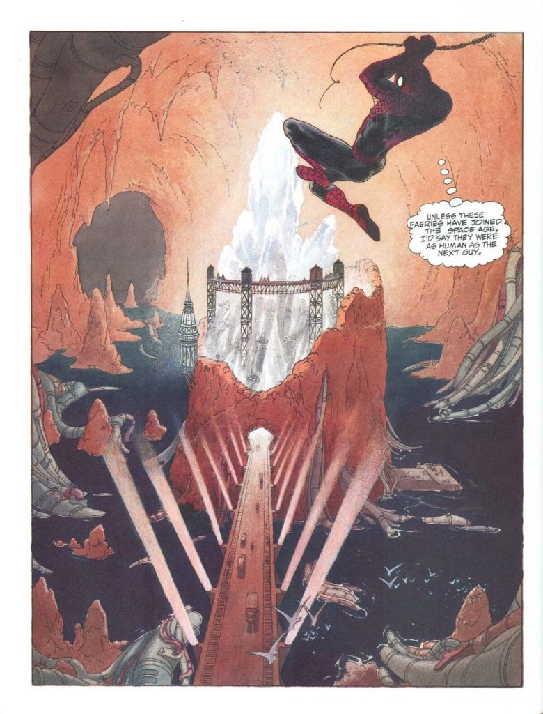 El paisaje campirano y sobrenatural es idóneo para el cuento que Vess nos quiere relatar. A la vez, resulta interesante ver a Spider-Man fuera de su entorno común, en el que se puede columpiar entre altos edificios y donde lo vemos combatir a los sospechosos comunes.