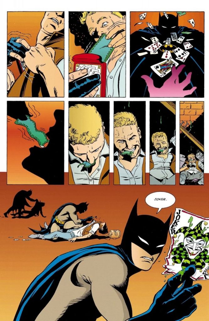 Batman persigue a un peligroso delincuente que toma a una pequeña niña como rehén y amenaza con hacerle daño. Batman lo desarma y el criminal escapa. Al verse acorralado, se suicida por medio de un veneno que deforma su cara con una sonrisa mortal, denotando la participación de Joker.