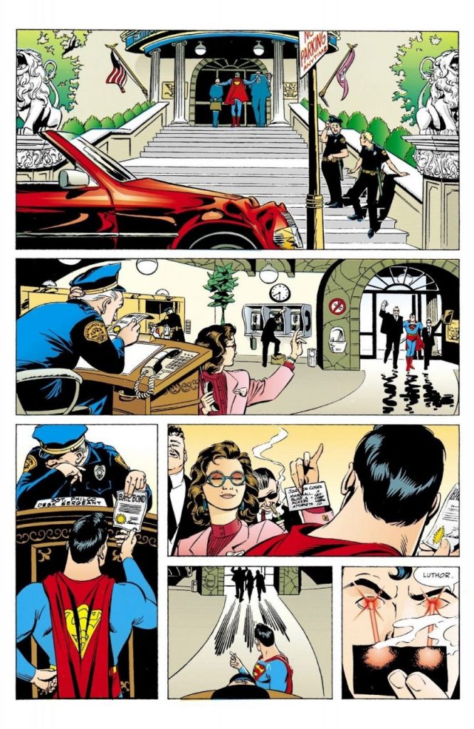 Por su parte, Superman detiene a unos narcotraficantes y los lleva a la estación de policía. Al entregarlos, estos ya cuentan con el correspondiente pago de fianza y los esperan sus abogados. “Luthor”, dice Superman entre dientes, antes de partir.