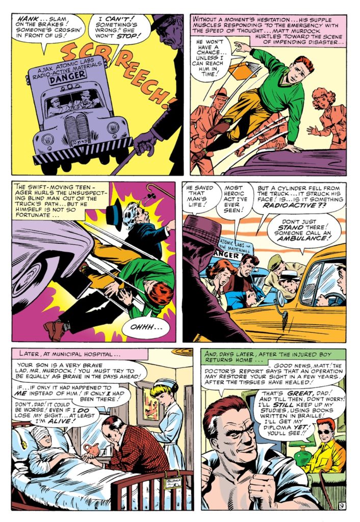 El químico que transforma a las tortugas en humanoides, es el mismo que deja ciego a Matt Murdock y que le da poderes especiales en Daredevil #1, por Stan Lee y Bill Everett.
