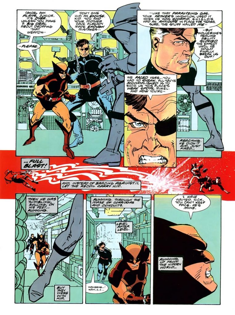 Una gran historia con estupendo arte es Wolverine, Nick Fury: The Scorpio Connection (Wolverine, Nick Fury: La conexión Scorpio).