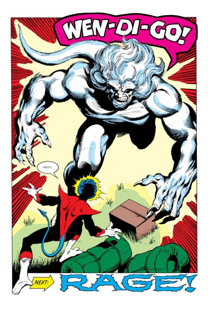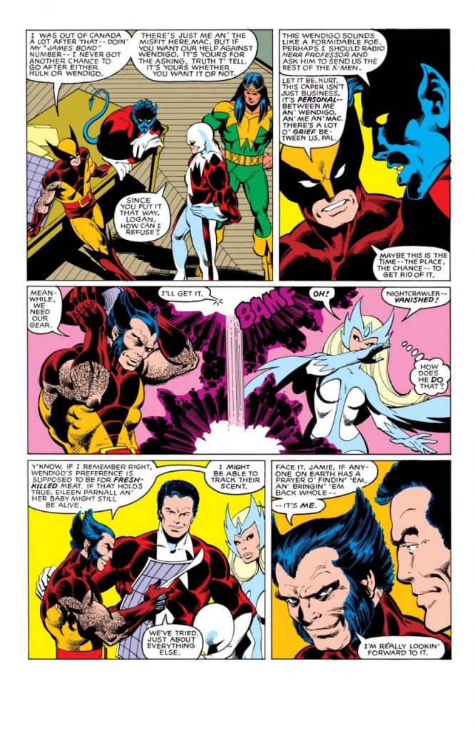 Posteriormente, Kurt y Logan se unen a Vindicator, Shaman y Snowbird, quienes investigan una serie de ataques salvajes en el bosque. Estos son perpetrados por el mítico animal canadiense, Wendigo, que apareció en el debut de Wolverine, en The Incredible Hulk, en 1974.